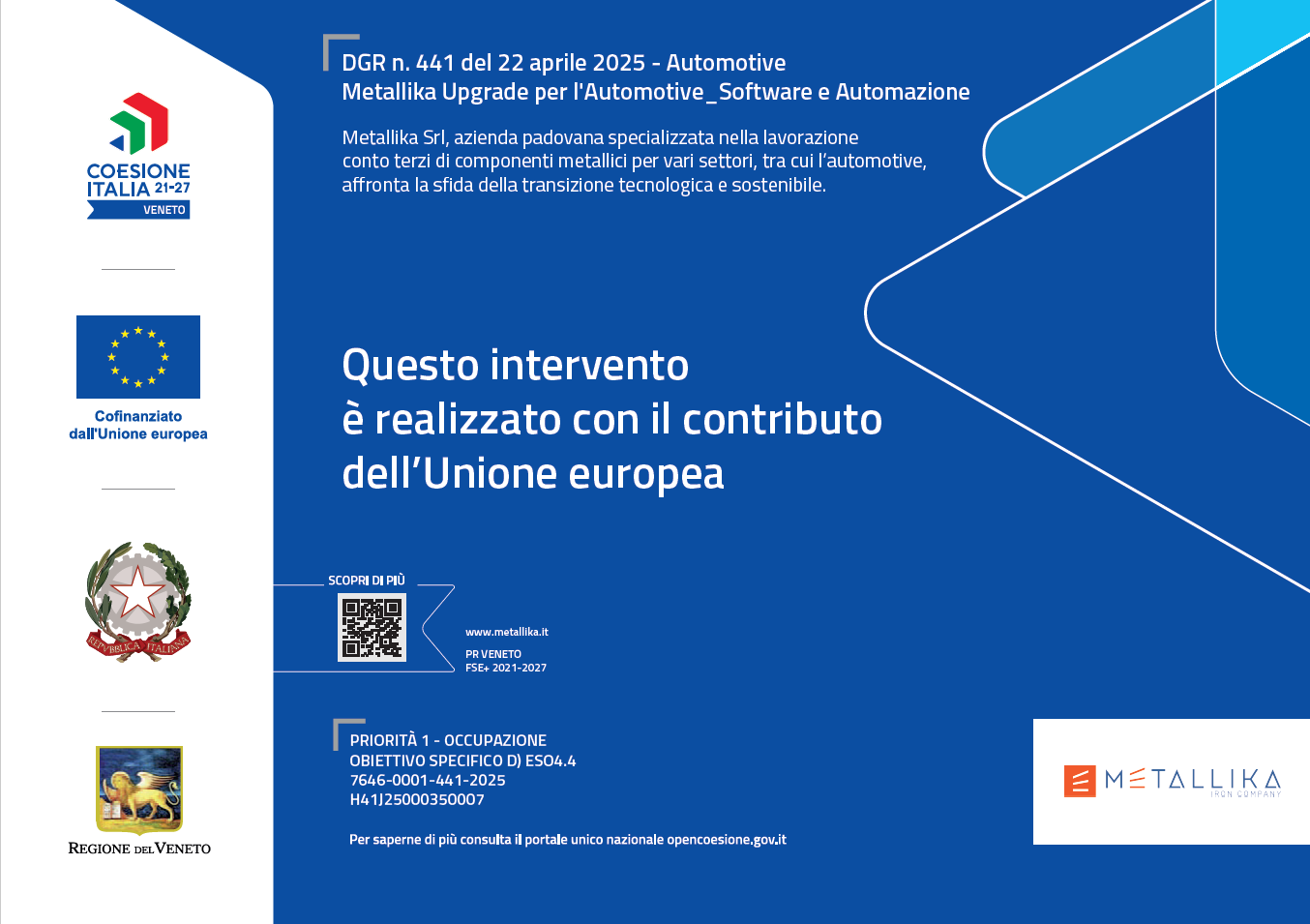 La nostra azienda affronta la sfida della transizione digitale e sostenibile, aderendo al progetto nell’ambito “Componentistica” e S3 Veneto (traiettoria
